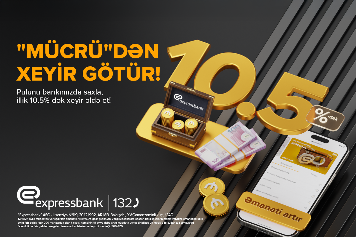 Minimum 300 AZN yerləşdirməklə Expressbankda şəxsi “Mücrü” hesabınızı açaraq əmanətinizə illik 10.5% artım əldə edə bilərsiniz.