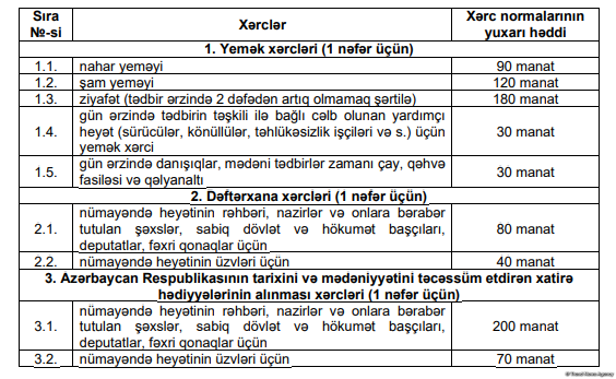 Beynəlxalq və ölkə səviyyəli tədbirlərin keçirilməsi üçün büdcə vəsaitlərinin xərc normalarında dəyişiklik edilib